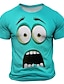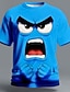 Муж. 3D-печати 3D Смешные эмоции Футболка С короткими рукавами Футболка 3D печать Вырез под горло Рубашка преувеличены Оригинальный рисунок Для вечеринок Повседневные Праздники Красный Синий Лиловый