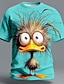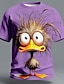Муж. Животное Смешной Утка Футболка С короткими рукавами Футболка 3D печать Вырез под горло Рубашка преувеличены Оригинальный рисунок Для вечеринок Праздники Синий Чистый синий Лиловый Лето Весна