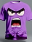 Муж. 3D-печати 3D Смешные эмоции Футболка С короткими рукавами Футболка 3D печать Вырез под горло Рубашка преувеличены Оригинальный рисунок Для вечеринок Повседневные Праздники Белый Лиловый