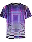 Муж. 3D-печати 3D Футболка С короткими рукавами Футболка 3D печать Вырез под горло Рубашка преувеличены Оригинальный рисунок Для вечеринок Для улицы Повседневные Темно-лиловый Светло-лиловый Лиловый