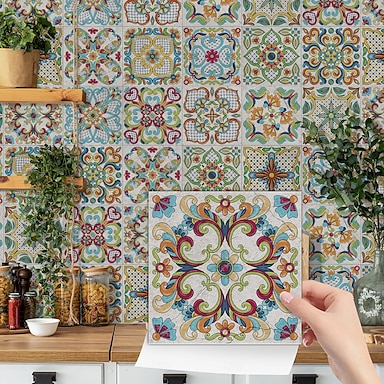 24/48 шт. утолщенная кристаллическая пленка марокканский стиль плитка наклейки ретро ПВХ настенный декор водонепроницаемый &маслостойкий съемныйдля ванной комнатыкухонный декорвинтажный домашний декор