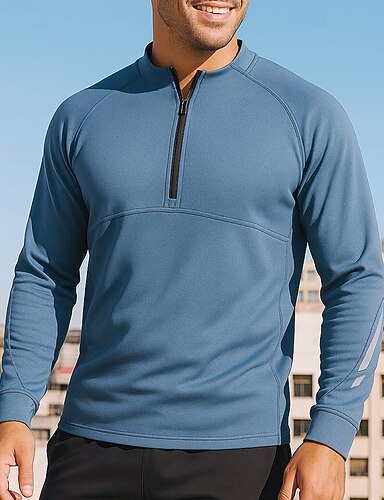 Муж. Беговой верх Спортивная толстовка Четверть молния Длинный рукав Верхняя часть Одежда для спорта и отдыха Однотонный С защитой от ветра Быстровысыхающий Тренажерный зал На открытом воздухе Бег