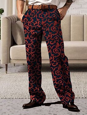 Муж. Цветочный принт Огурцы Этнический Костюм Нормальная Деловая одежда Официальные Свадьба На каждый день Молния Карман Прямые брюки Лето Весна Осень 3D печать Розовый Красный Лиловый