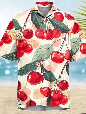 Муж. Фрукты Вишня Гавайская рубашка Рубашка Алоха Короткие рукава Рубашка Отложной На каждый день на открытом воздухе Отпуск Для улицы Желтый Красный Зеленый S M L