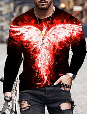 Муж. Феникс Футболка Длинный рукав Футболка 3D печать Вырез под горло Рубашка Спорт Мода Спортивная одежда на открытом воздухе Отпуск Для улицы Белый Желтый Красный Лето Весна Одежда S M L XL XXL