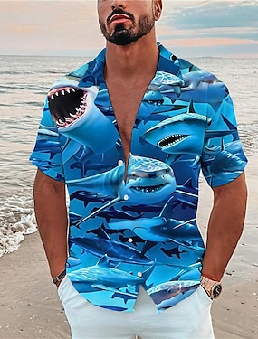 Муж. Животное Акула тропический Рубашка Гавайская рубашка Походная рубашка С короткими рукавами Рубашка Отложной Мода Оригинальный рисунок На каждый день на открытом воздухе Для улицы Повседневные