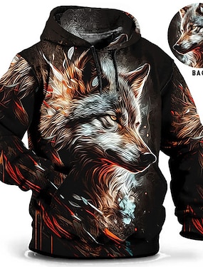 Муж. Животное Волк Графические принты Толстовка Худи Повседневные Классика Длинный рукав Капюшон Праздники На выход Уличная одежда Красный Синий С принтом Весна & осень Дизайнер