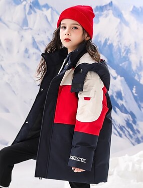 Дети Девочки Пух Детская куртка-пуховик Очаровательны Молния Школа Пальто Верхняя одежда 7-13 лет Весна Белый Красный
