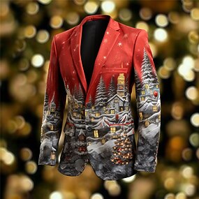 Новогодняя тематика Муж. Новогодняя ёлка Рубашка Кнопка рубашка Длинный рукав На каждый день Вечерние наряды Повседневные Осень Зима Весна лето Рубашечный воротник Кнопка вверх 3D печать