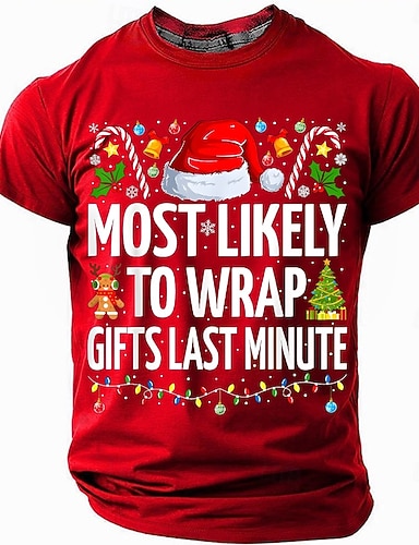 Новогодняя тематика Муж. Забавный сленг Футболка С короткими рукавами Футболка 3D печать Вырез под горло Рубашка Повседневные Оригинальный рисунок Художественный Отпуск Для вечеринок Для улицы