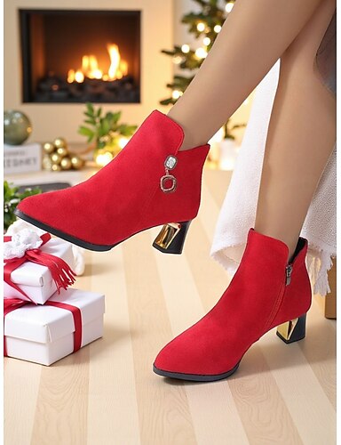 Женские красные замшевые ботильоны с золотистым каблуком и молнией сбоку, стильные зимние ботильоны для рождественских вечеринок &повседневные наряды