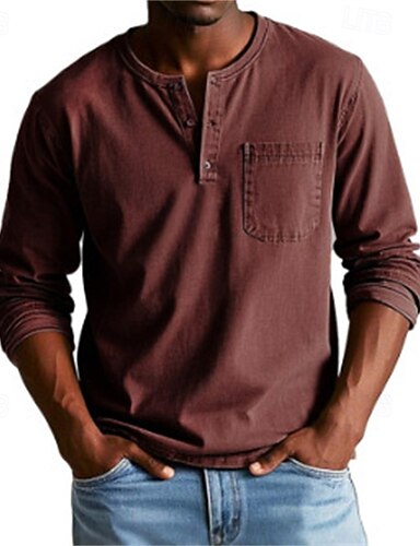 Муж. Футболка Рубашка Хенли Футболки Рубашка с длинным рукавом Длинный рукав Хенли Весна Осень Полотняное плетение Мода Оригинальный рисунок Классический Карманы Отпуск Для улицы На выход