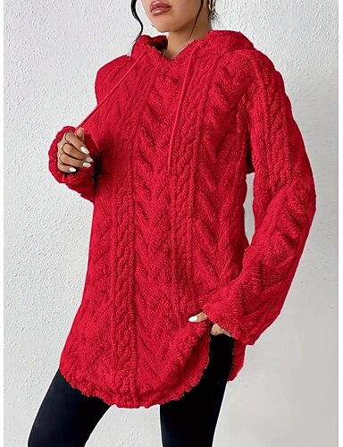 Жен. Вязаная ткань На каждый день Мягкий Сплошной цвет Рельефный узор Капюшон Трикотаж Длинный рукав Обычные топы Вязать на открытом воздухе Повседневные выходные Черный Белый Осень Зима