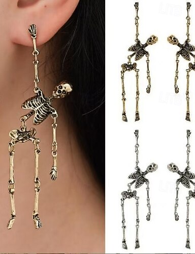 1 пара серег-скелетов в стиле Хэллоуина, винтажные бронзовые серьги-гвоздики ужасов, жуткие серьги-черепы, забавные украшения для женщин и девочек на вечеринку