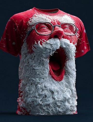 Муж. Футболка Дед Мороз Вырез под горло Одежда 3D печать на открытом воздухе Новогодние подарки Для вечеринок С короткими рукавами Круто Повседневные