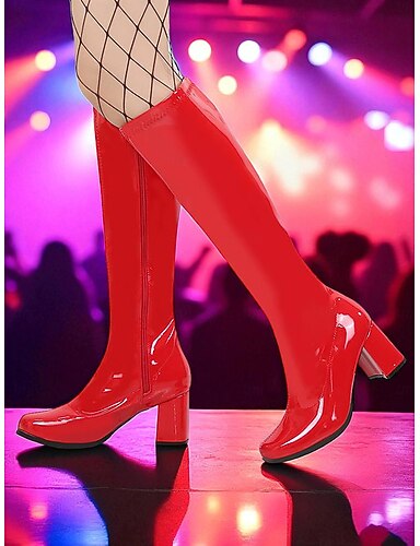 Женские серебристые лакированные сапоги из искусственной кожи с каблуком-подбой, в стиле ретро 1980-х годов, для вечеринок и танцевальных выступлений. &ночной выход