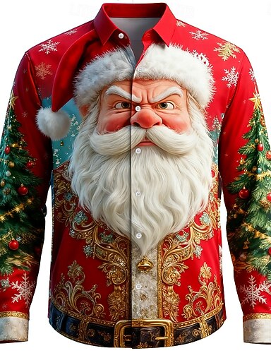 Новогодняя тематика Муж. Дед Мороз Новогодняя ёлка Человеческое лицо Рубашка Кнопка рубашка Длинный рукав Веселая на открытом воздухе Праздники Весна Осень Отложной 3D печать рубашки с воротником