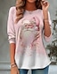 Новогодняя тематика Жен. Футболка Дед Мороз В снежинку На каждый день Длинный рукав Вырез под горло Обычные топы выходные С принтом Белый Желтый Красный Пурпурный Оранжевый Зима