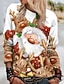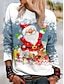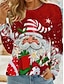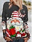 Новогодняя тематика Жен. Футболка Графика Дед Мороз Винтаж Мода Стиль Длинный рукав Вырез под горло Круглый вырез Обычные топы Повседневные выходные С принтом Черный Белый Розовый Красный Синий