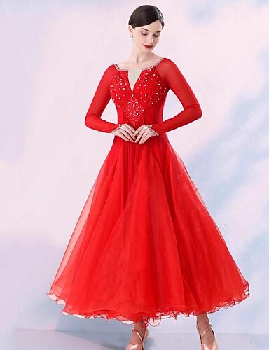 Бальные танцы Платье Стразы Жен. Выступление Учебный Длинный рукав Спандекс