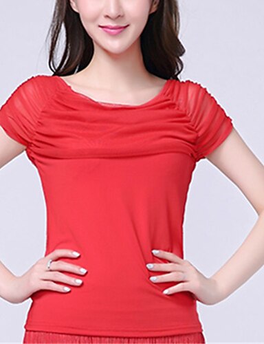 Латино Бальные танцы Спортивная одежда Кофты Оборки Чистый цвет Планка Жен. Выступление Учебный С короткими рукавами Сетка Молочное волокно