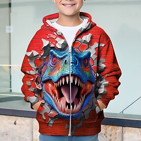 Мальчики 3D Динозавр Толстовка Пальто Верхняя одежда Длинный рукав 3D печать Осень Зима Мода Уличный стиль Круто Дети 3-12 лет на открытом воздухе Повседневные Стандартный