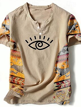 Муж. Графика Контрастных цветов Этно Футболка Рубашка Хенли С короткими рукавами 3D печать Оригинальный рисунок Этнический Классика на открытом воздухе Отпуск Повседневные Весна лето