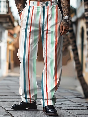 Красочные мужские классические брюки Holiday X Designer Kris в полоску с принтом, брюки, брюки с эластичностью по талии
