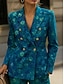 Жен. Блейзер Сохраняет тепло Удобный Пуговицы Винтаж Мода Классика Современное Цветочный принт Отпуск Дом Повседневные На каждый день Двубортный крой Обычная Лацкан с тупым углом Стандартный
