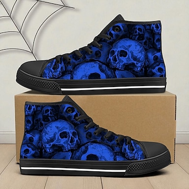 Мужские высокие кеды с принтом черепа зеленого цвета – готическая панковская парусиновая обувь для вечеринки на Хэллоуин, клубов и повседневной уличной одежды