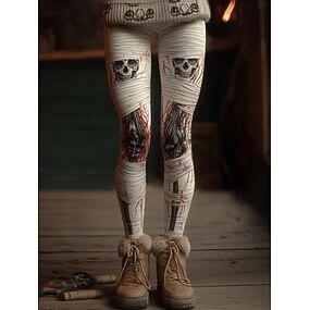 Леггинсы для женщин отпуск винтажная мода полного кроя высокой талии графика принт черепа мягкие дышащие эластичные формальные отпуск уличные молочно-белые весна осень зима Slim Fit