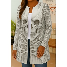 Хэллоуин Женское Пальто Легкое Удобное Принт Черепа Винтажная Художественная Повседневная Череп Повседневная Длинная Безворотник Обычная Посадка Длинный Рукав Верхняя Одежда Черная Светло-Серая