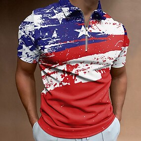 Муж. Американский флаг Ветераны Рубашки-поло на молнии Рубашка для гольфа С короткими рукавами Футболки поло Рубашки с воротником На каждый день Уличная одежда Одежда для отпуска Наряды для вечеринок