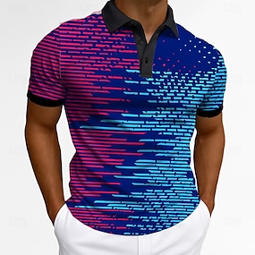 Муж. Геометрический принт Рубашки-поло на молнии Рубашка для гольфа С короткими рукавами Футболки поло Рубашки с воротником Деловая одежда Одежда для отпуска Официальная одежда Праздничная одежда 3D