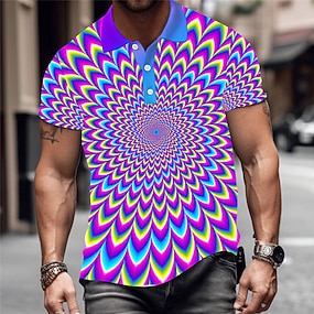 Муж. Графика Рубашка для гольфа С короткими рукавами Футболки поло Рубашки с воротником Одежда для отпуска Одежда в стиле рейв Наряды для вечеринок Пуговицы 3D печать Лето Весна Черный Синий Лиловый