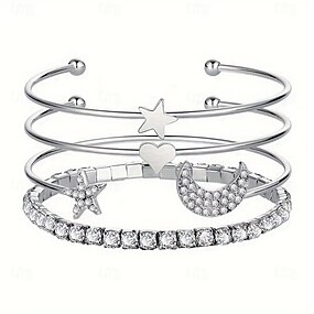 Жен. Браслет цельное кольцо геометрический MOON Сердце Звезда Элегантный стиль Мода Роскошь Сплав Браслет Ювелирные изделия Серебряный / Золотистый Назначение Для вечеринок