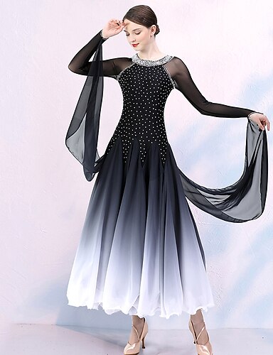 бальные танцы платье для женщин выступление современные танцевальные костюмы длинный рукав конкурс вальс танцевальное платье