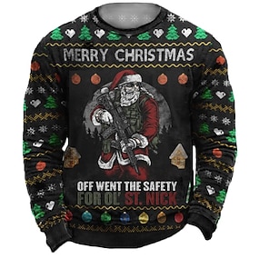 уродливый рождественский свитер мужские смешные свитера Санта-Клаус принт снежинки вязаный пуловер джемпер трикотаж новогодний свитер повседневная одежда отпуск длинный рукав круглый вырез черный