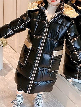 Дети Девочки Пух Сплошной цвет Мода Молния Карман Школа Пальто Верхняя одежда 4-12 лет Зима Черный Темно синий Коричневый