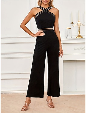 Жен. Нормальная Комбинезоны Уличный стиль Сплошной цвет Без рукавов НАЙКА НЕКО Сетка Открытая спина Для улицы Бизнес Стандартный Черный Лето