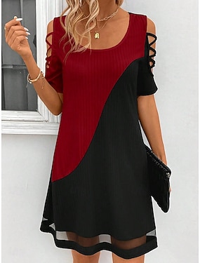 Жен. Платье средней длины Платье A-силуэта Летнее платье Элегантный стиль Винтаж Стиль Дом Для вечеринок Праздники Свободное облегание Сплошной цвет Контрастных цветов С короткими рукавами