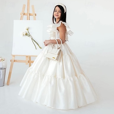 Детское праздничное платье Девочки Платье для первого причастия Платье для вечеринки Свадьба Для вечеринок Принцесса Милая Новогодняя тематика Карнавал Рюши Сплошной цвет Без бретелей Вырез под горло