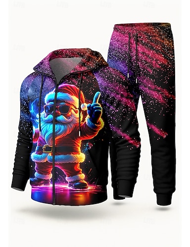 Новогодняя тематика Муж. Толстовка Спортивный костюм Спортивный костюм из двух частей Кулиска Застегнуться Галактика Наборы одежды Осень Лиловый Назначение На открытом воздухе Путешествия