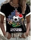 Женская футболка с принтом, посвященная мировому футбольному матчу 2026 года, стильная, классическая, повседневная, с коротким рукавом, круглым вырезом, стандартного кроя, спортивная, черная,