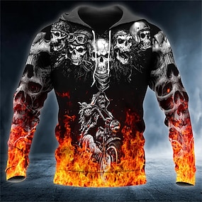 Муж. Графические принты Скелет Толстовка Худи Уличный стиль Классический Длинный рукав Капюшон Для занятий спортом Повседневные Спорт Черный Молния С принтом Весна & осень Дизайнер