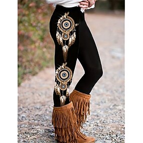 Жен. Леггинсы Отпуск Винтаж Этнический стиль По щиколотку Завышенная Графика 3D печать Быстровысыхающий Воздухопроницаемость Мягкий Эластичная на открытом воздухе Дом Повседневные