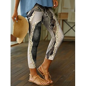 Леггинсы для женщин капри 3D печать высокая эластичность винтажная мода повседневная длина до икр высокой талии цветочный графический геометрический принт воздухопроницаемые мягкие тянущиеся для