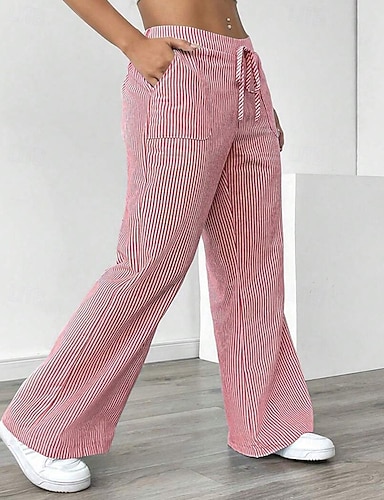 Жен. Нахальный Чино Отпуск Уличный стиль На каждый день Полная длина Нормальная Полоски Кулиска Карман Удобный Слабоэластичная на открытом воздухе Отпуск Повседневные