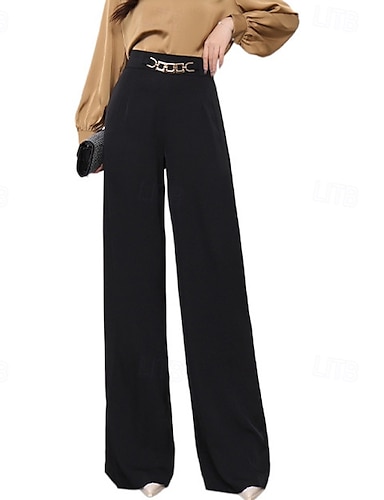 Жен. Штаны Чино Брюки палаццо Мода Уличный стиль Классический Полная длина Завышенная Сплошной цвет Полотняное плетение Эластичный пояс удобный Мягкий Удобный Эластичная на открытом воздухе Для улицы