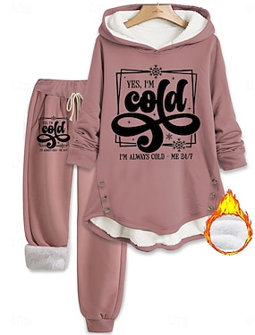 Женский комплект пижам с флисовой подкладкой 2 предмета свитшот спортивные костюмы теплый комфорт мягкий пуловер с длинным рукавом длинные брюки круглый вырез текст эластичный пояс домашний